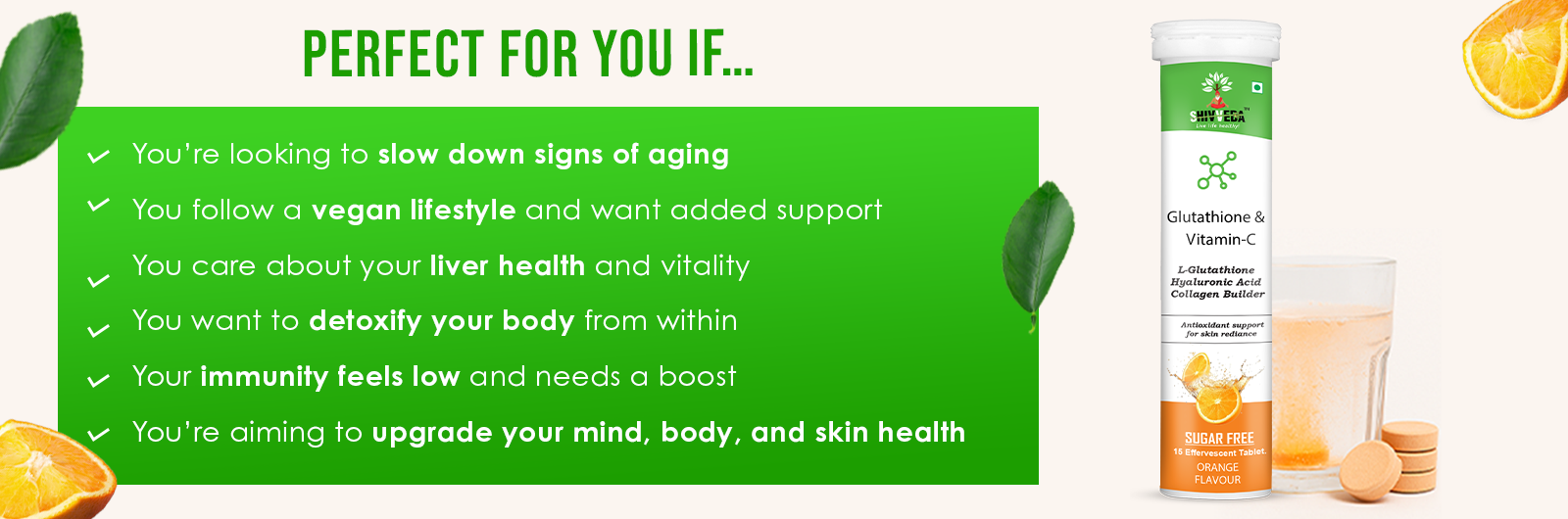 Shivveda Glutathione & Vitamin-C Effervescent Tablets - Best Glutathione & Vitamin-C Tablets for Glowing Skin