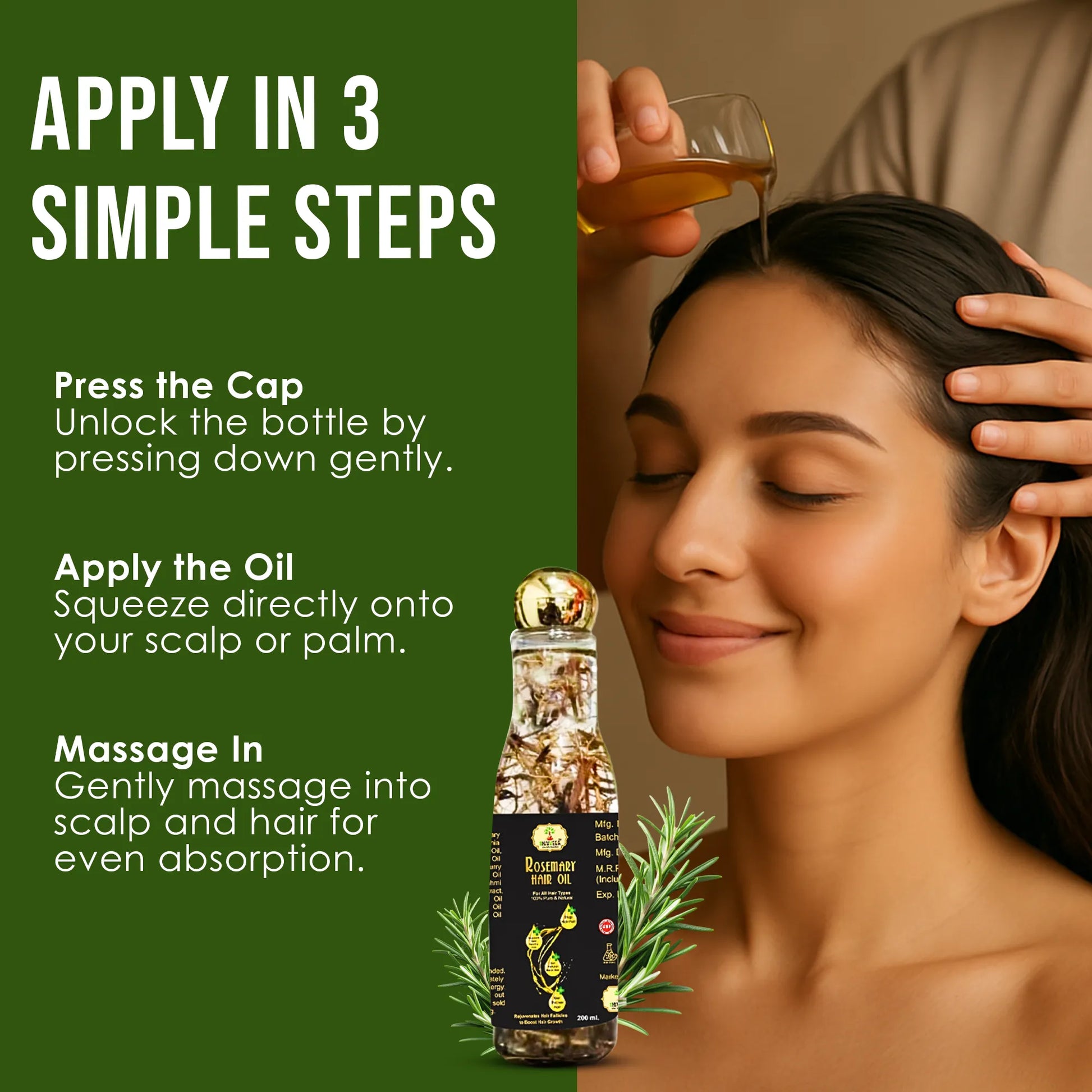 Handpicked Ayurvedic Herbs – A blend of rosemary, bhringraj, amla, neem, and more