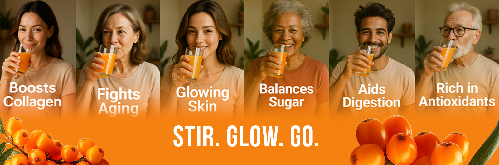 Sea Buckthorn is packed with omega fatty acids and essential minerals, which help restore energy levels, reduce fatigue, and promote overall physical wellness. It is a great option for those looking to Boost Immunity, Skin Glow, & Digestion naturally.