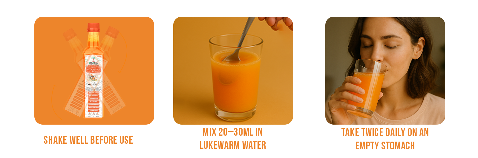 Mix 20–30 ml of Shivveda Sea Buckthorn Juice to boost immunity with lukewarm water.